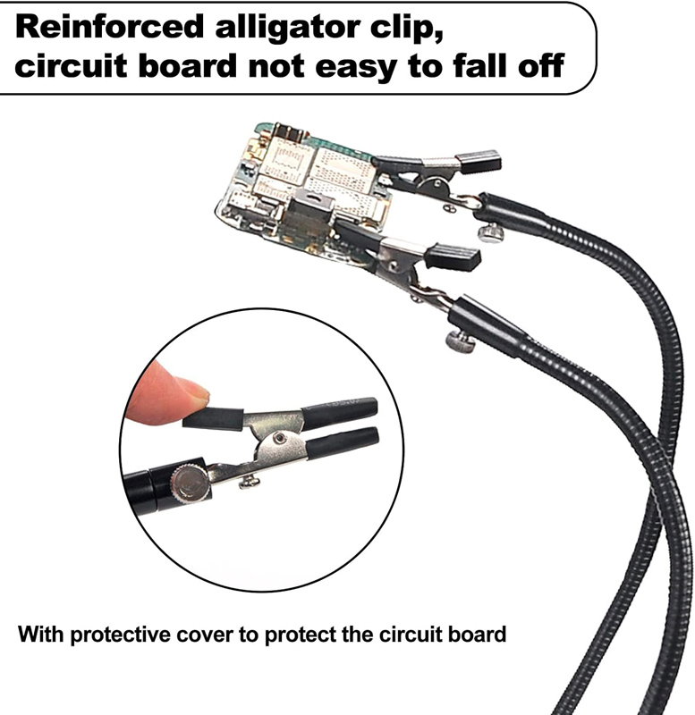 Οι 4 εύκαμπτοι βραχίονες στήριξης με alligator clips προσφέρουν ευελιξία και επιτρέπουν την εύκολη προσαρμογή της πλακέτας στο ιδανικό σημείο.